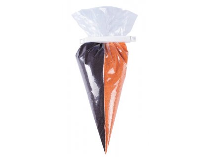 Sáček je dvouvrstvý, vnitřní strana je hladká (pro snadnější vytlačení náplně), vnější strana je drsná (pro lepší držení).