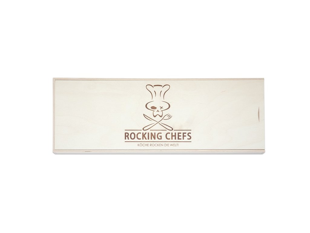 Mimořádný nůž vyžaduje mimořádný obal. Proto je nůž zabalen do exkluzivní dřevěné krabičky. Navíc je nůž vybaven zvláštním chráničem čepele, aby byl uložen bezpečně.