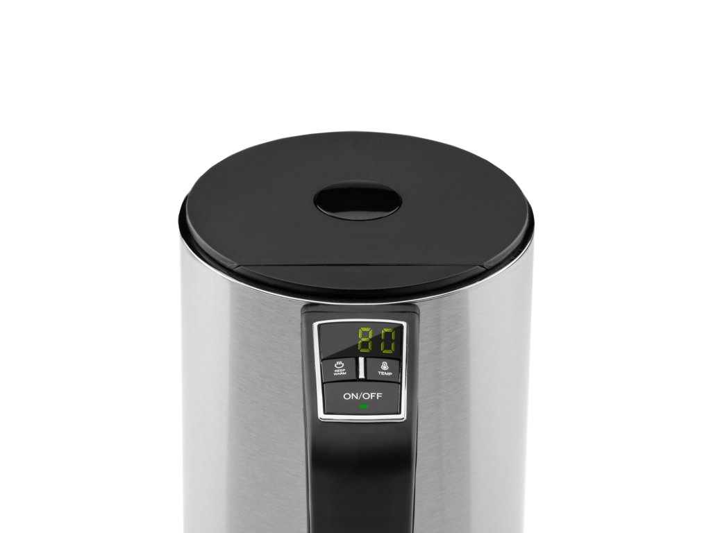 Jedním z hlavních rysů této konvice je variabilní nastavení teploty ve 14 krocích od 35°C do 100°C po 5°C. Přesným zobrazením teploty na displeji budete mít vždy přehled o aktuální teplotě. Díky automatické funkci udržování teploty můžete horkou vodu po dobu 30 minut udržovat na požadované teplotě