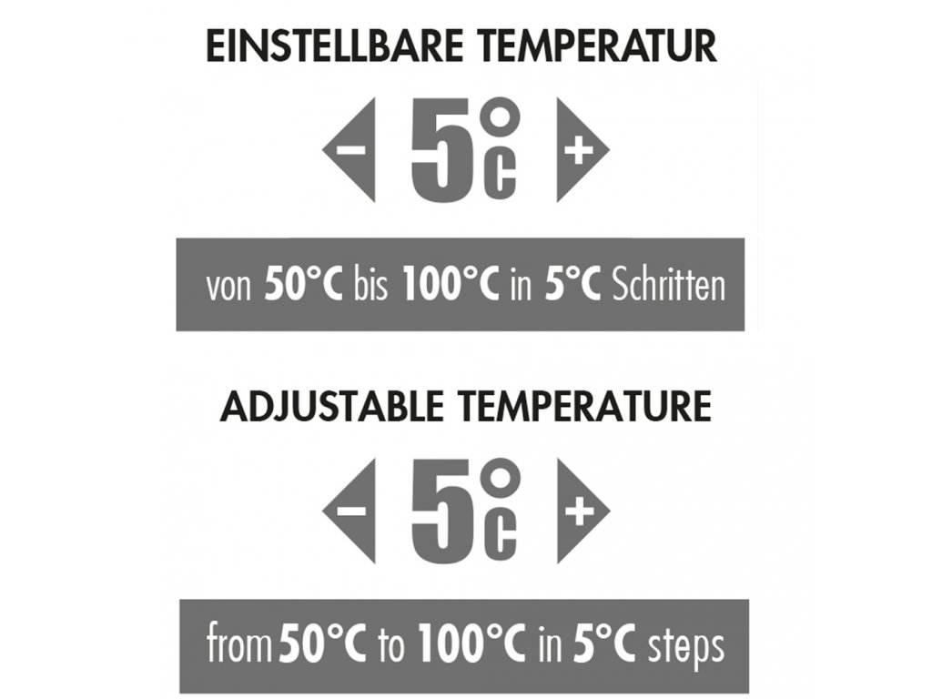 - Teplota: nastavitelná v rozmezí 50 °C až 100 °C - po 5 °C