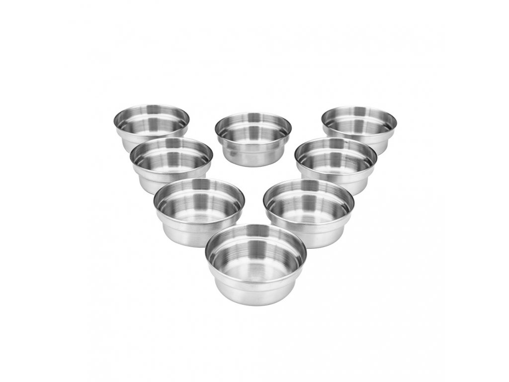Set obsahuje praktický talíř pro 8 nerezových nádob na omáčku o objemu 60 ml každá, které jsou také vhodné do myčky na nádobí. Můžete tak servírovat různé omáčky a dipy k vašemu fonduovému pokrmu.