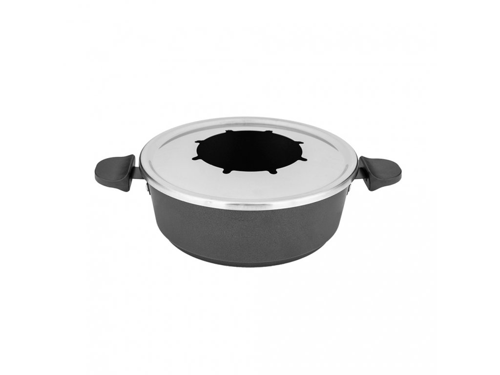 Samostatný nerezový hrnec s objemem 1,8 litru má nepřilnavý povrch a je vybaven víkem, které chrání před vystřikováním. Hrnec lze snadno čistit a je vhodný do myčky na nádobí.