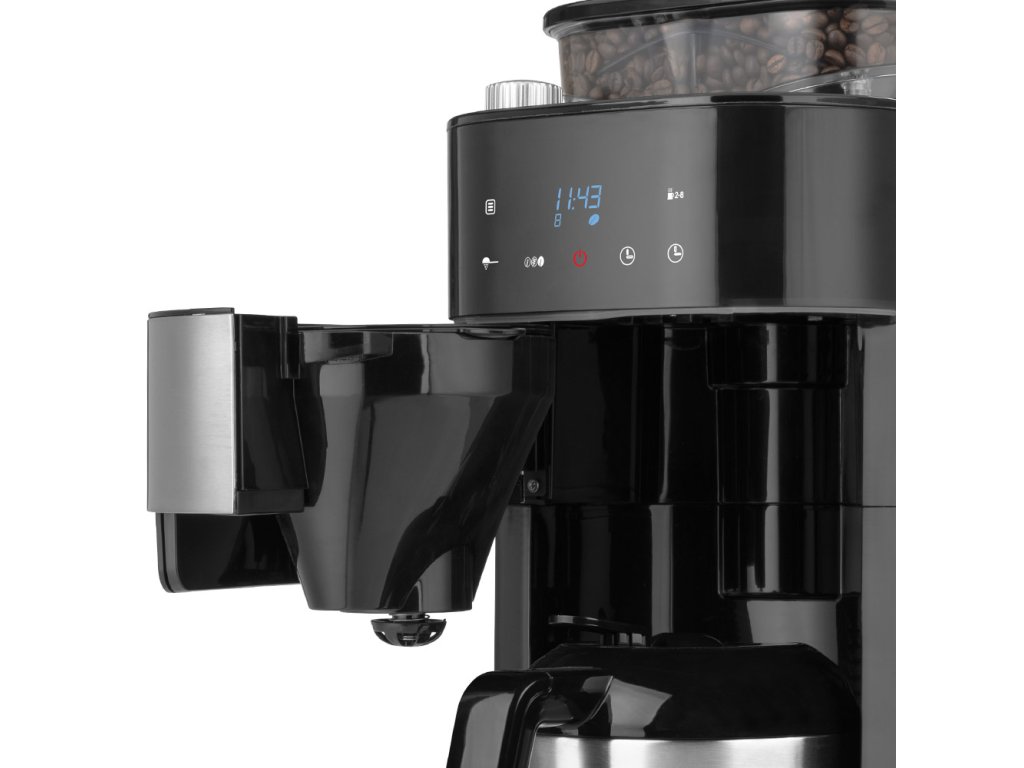 Kávovar Grind & Brew Pro Thermo je filtrační kávovar s integrovaným mlýnkem, který umožňuje přípravu až 8 šálků čerstvé kávy v izolované termosce o objemu 1,0 litru. Díky zásobníku na 200 g kávových zrn a kónickému mlýnku s 8 stupni mletí si můžete vychutnat kávu přesně podle svých představ – od jemné po silnou intenzitu.
