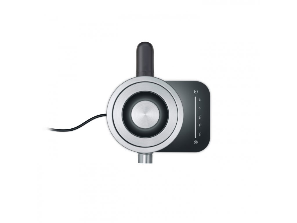 Tento moderní designový spotřebič je vybaven funkcemi, které jsou určeny pro dokonalou přípravu čaje. Konvice je vybavena dotykovým displejem s možností nastavení teploty, která je důležitá zejména pro milovníky bílých čajů. Kromě toho je vybavena funkcí udržování teploty s 30minutovou funkcí a funkcí filtrované kávy pro přípravu kávy pomocí metody pour-over. Tato konvice je navíc vybavena nerezovým vápenným filtrem, který lze snadno vyjmout a umýt. Kromě toho má osvětlení LED a ochranu proti chodu na sucho. Díky přídavnému víku s výsuvným čajovým sítkem z nerezové oceli lze čaj louhovat přímo v konvici. Navíc je vybavena funkcí ukazatele zbytkového tepla a automatickým vypnutím pro zvýšení bezpečnosti vaření. Kromě toho má objem nádoby 1 litr a označení množství náplně, centrální kontakt 360° a skleněný podstavec s navíjením kabelu. Konvici lze snadno plnit a čistit díky odnímatelnému víku.