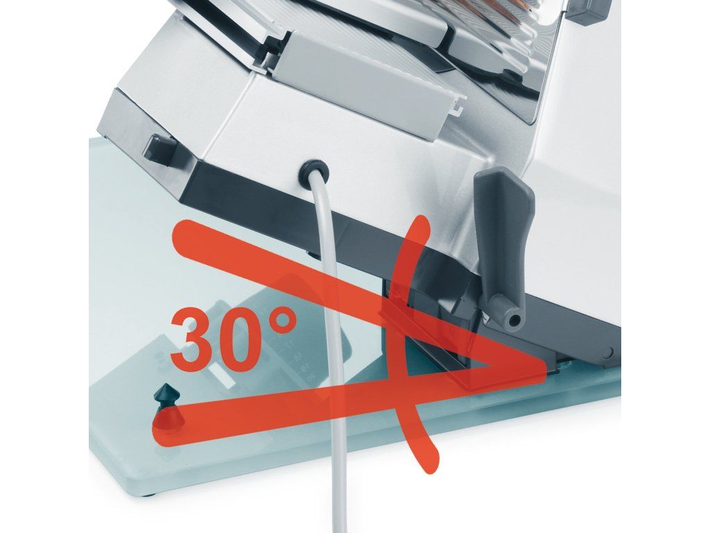 Kráječ je možné ze základové desky vyklopit o 30º do šikmé polohy. Tato poloha zajišťuje přisouvání krájené potraviny k noži, což usnadňuje krájení.