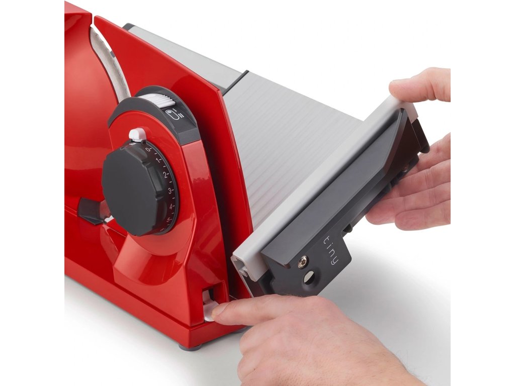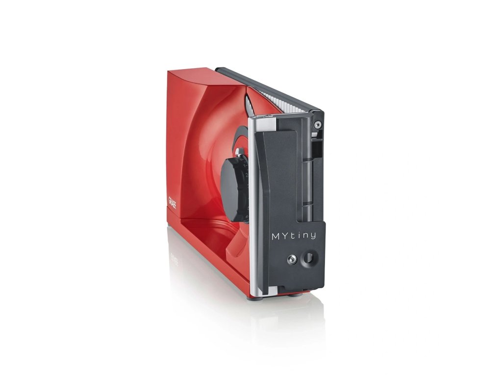 Kráječ MYtiny je vybaven 170mm vlnkovým nožem, který umožňuje nastavení tloušťky řezu od 0 do 15 mm. Centrální ovládací jednotka je navíc vybavena bezpečnostním zámkem, který zajišťuje fixaci nože a spínače při přepravě nebo skladování. Maximální řezná výška tohoto skládacího kráječe je 150 mm.