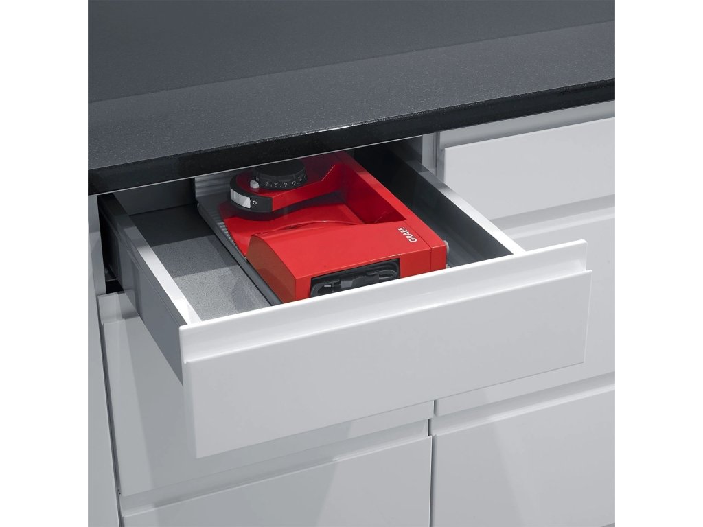 S jeho puristickým a ultrakompaktním designem, kráječ MYtiny nejenže vypadá skvěle, ale je i prakticky promyšlený. Kabel lze nastavit na požadovanou délku a po použití jej schovat do praktického výsuvného úložiště.