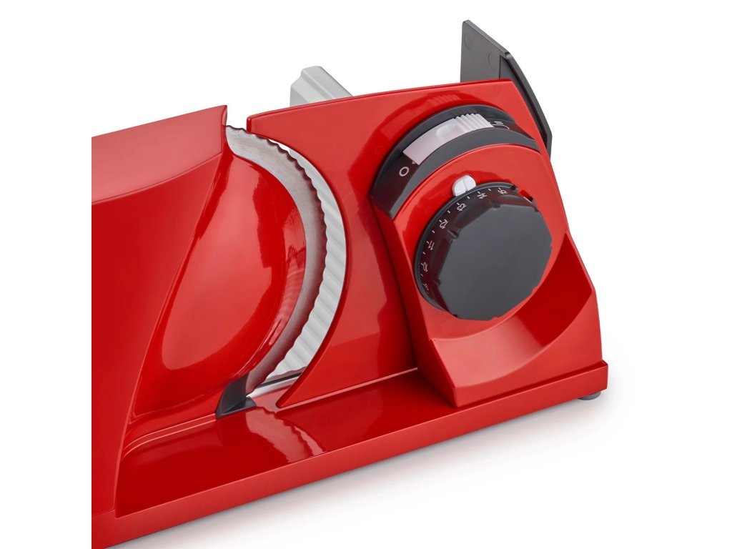 - Vybavení: Trvalý a pulzní spínač, automatické dětské bezpečnostní zajištění, univerzální nerezový vlnkový nůž Ø 170 mm, energeticky úsporný 45 W motor s maximální řeznou výkonností 170 W a nízkou úrovní hluku, výsuvné uložení kabelu s možností individuálního nastavení délky