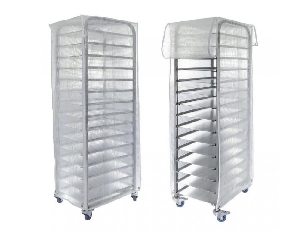 Ochranný kryt je určen pro vozíky s pekařskými plechy rozměru GN 1/1 (530 x 325 mm). Otevírání ochranného krytu pomocí zipů, otevírání z kratší strany pro podélné zakládání plechů do vozíku.