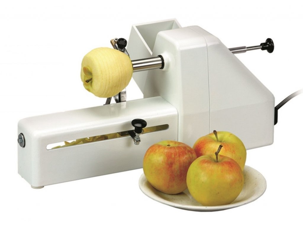 Elektrický stroj je určený pro loupání a dělení jablek. Stroj je vhodný pro pekárny, cukrárny, kuchyně apod. Stroj jablko oloupe, odstraní jadřinec a nakrájí jablko na plátky během 15 sekund.