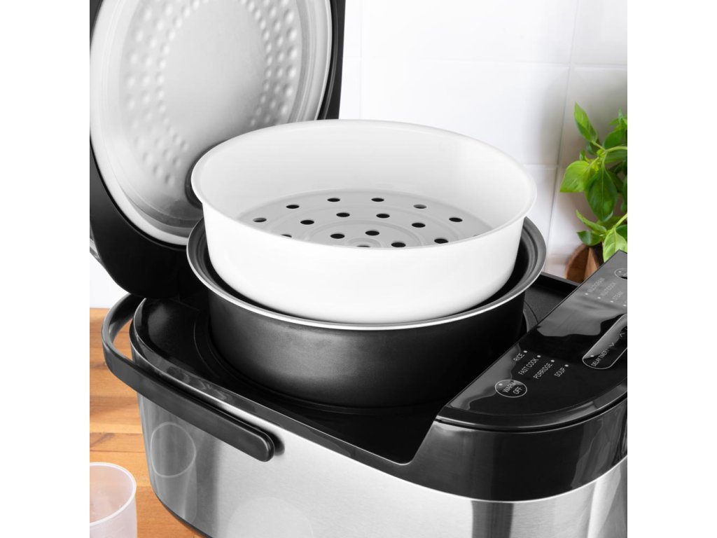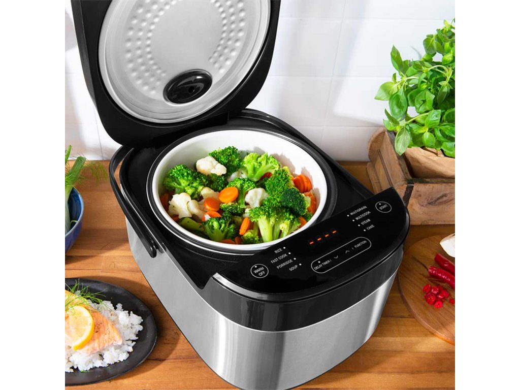 Multifunkční hrnec MULTICOOK PRO 8v1 s různými přednastavenými programy, ve kterých jednoduše připravíte různé druhy rýže a kaše, "One-Pot" recepty - neboli jídla vařená v jednom hrnci, polévky, zeleninu a různé dorty a moučníky. Dále také skvěle poslouží k tomu, aby vaše jídla zůstala čerstvá a teplá.