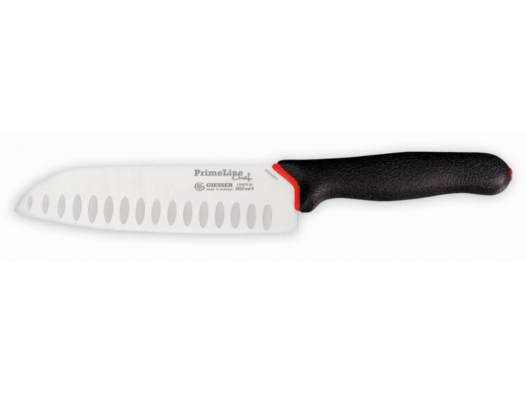 Nůž japonského typu SANTOKU s výbrusy v čepeli, černý, délka ostří 18 cm, GIESSER - PrimeLine