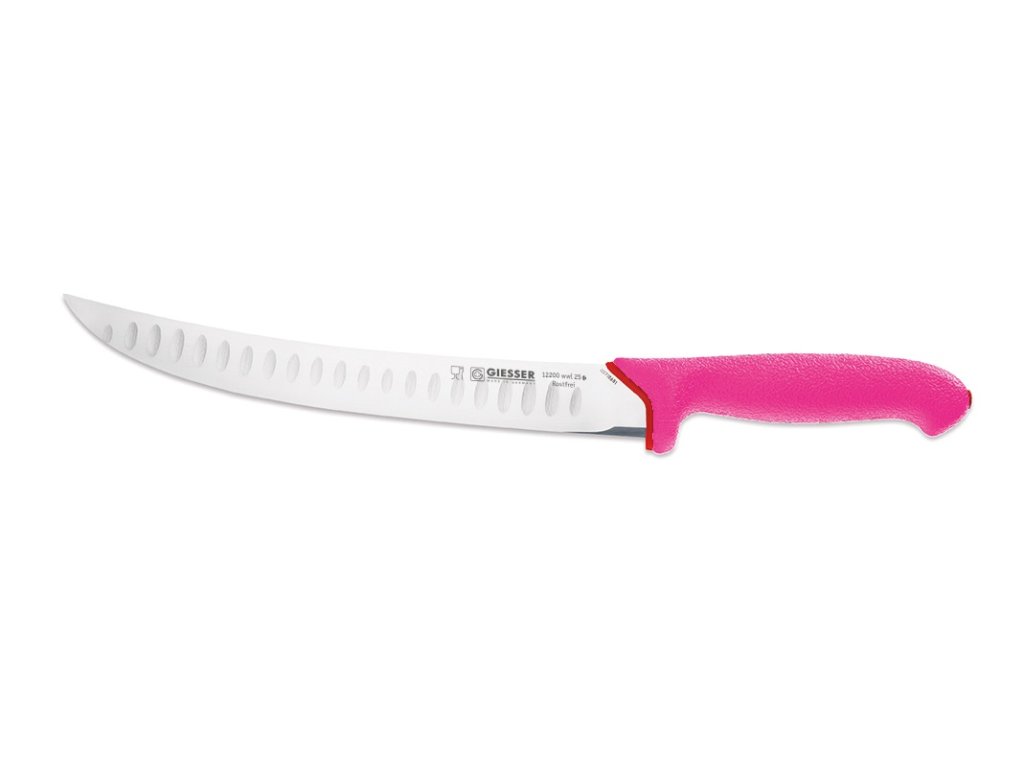 Nůž řeznický s výbrusy v čepeli, délka ostří 25 cm, Funky Pink, provedení "PrimeLine", GIESSER