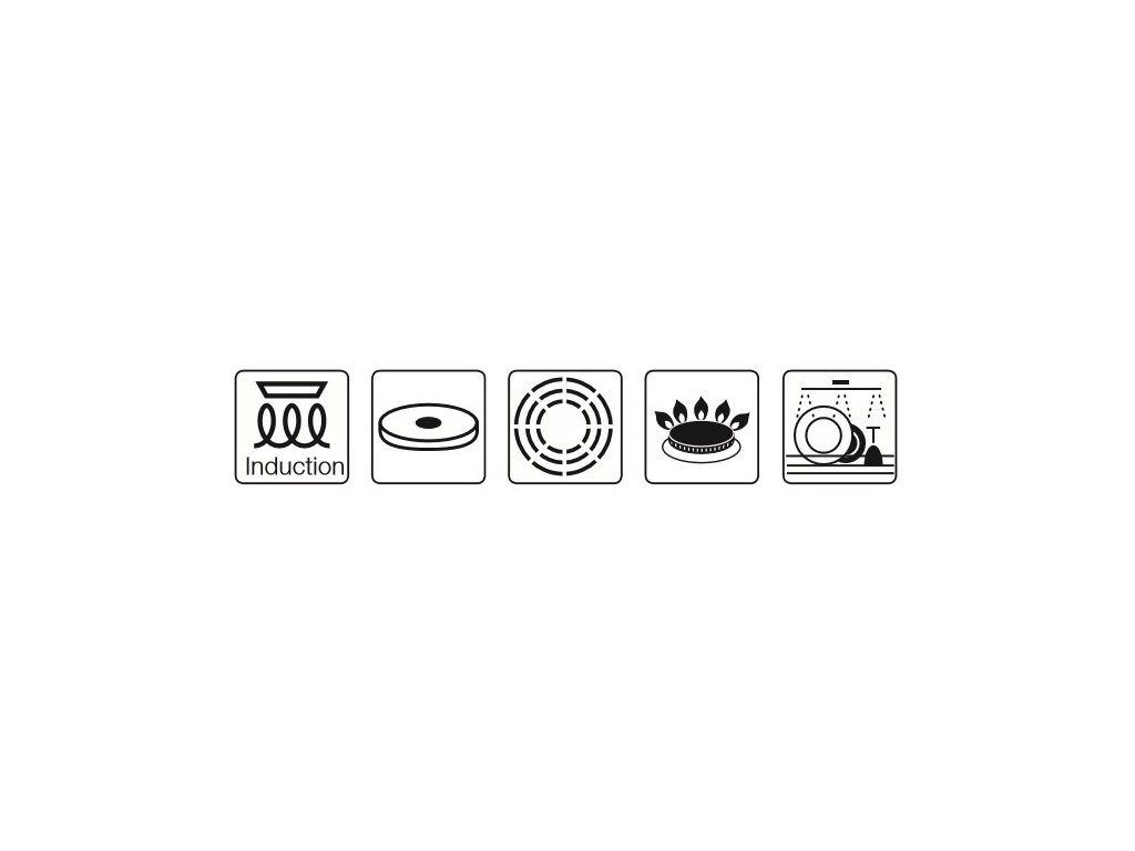 Nelepivý povrch pánve, dno 8 mm (složení: nerez, hliník, magnetická ocel), zahnutý okraj pro snadné vylívání.