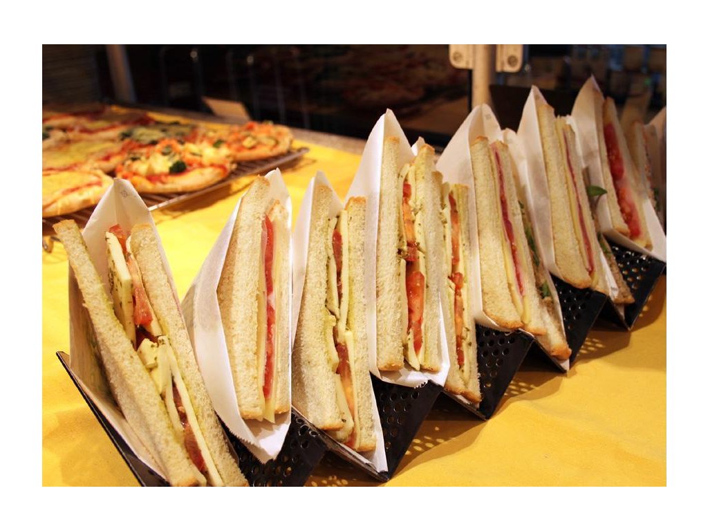 Stojánek určen pro prezentaci obložených baget, toustů apod. během prodeje.