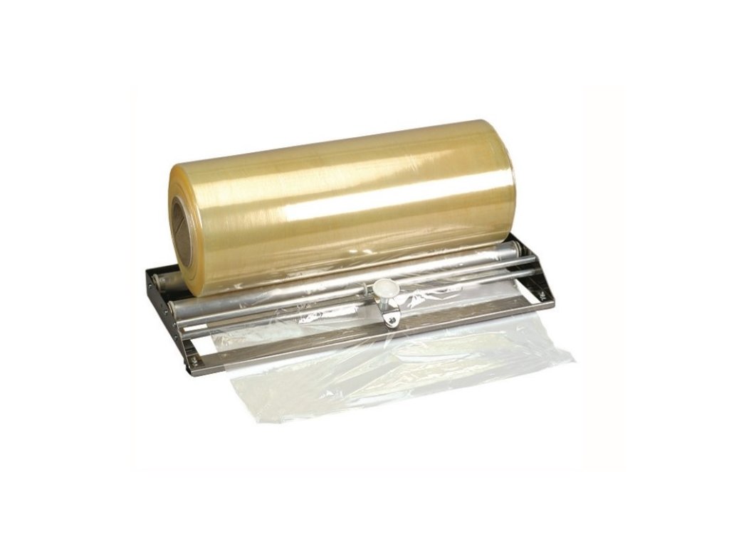 Držák s řezačkou pro velké fóliové role o šíři 400 mm.