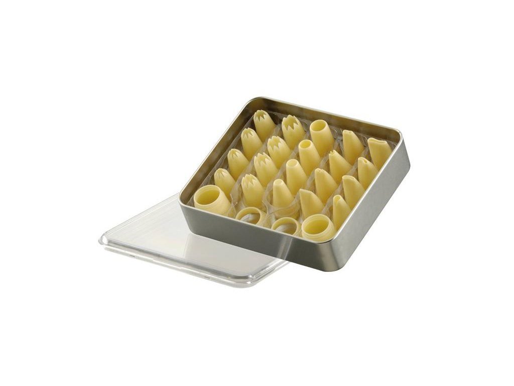 20 cukrářských špiček a 2 adaptéry v kazetě s průhledným víkem.