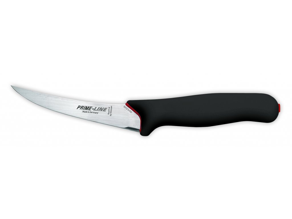 Základní sada řeznických nožů řady PrimeLine se střenkou v černé barvě. Provedení "PrimeLine" má speciálně zhotovenou plastovou střenku, která má tvrdé jádro a měkkou povrchovou vrstvu. Tento povrch, který má antibakteriální účinky, je i v extrémních podmínkách protiskluzový, minimalizuje riziko sklouznutí. Díky tomuto kombinovanému řešení použitých materiálů a díky anatomickému tvaru střenky se nůž velmi příjemně a bezpečně drží. U nožů řady "PrimeLine" je použita nejmodernější technologie způsobu žíhání ve vakuu, která spolu se způsobem ostření přináší extrémně ostrou čepel s dlouhou životností. Každý nůž řady "PrimeLine" má své jedinečné výrobní číslo.