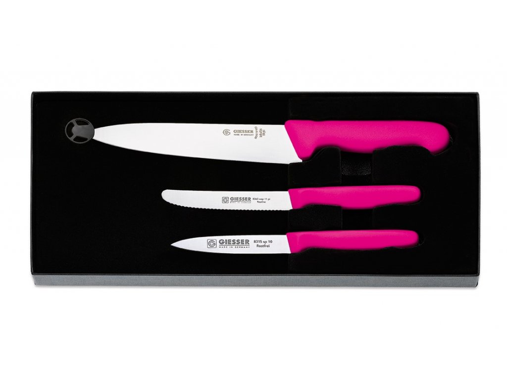 Sada tří nožů v dárkové kazetě, růžová barva, GIESSER