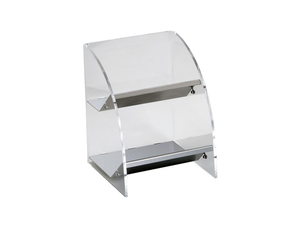 Zásobník elegantního vzhledu je rozměrově úsporný (plocha pouze 180 x 195 mm), stojánek má dvě patra.