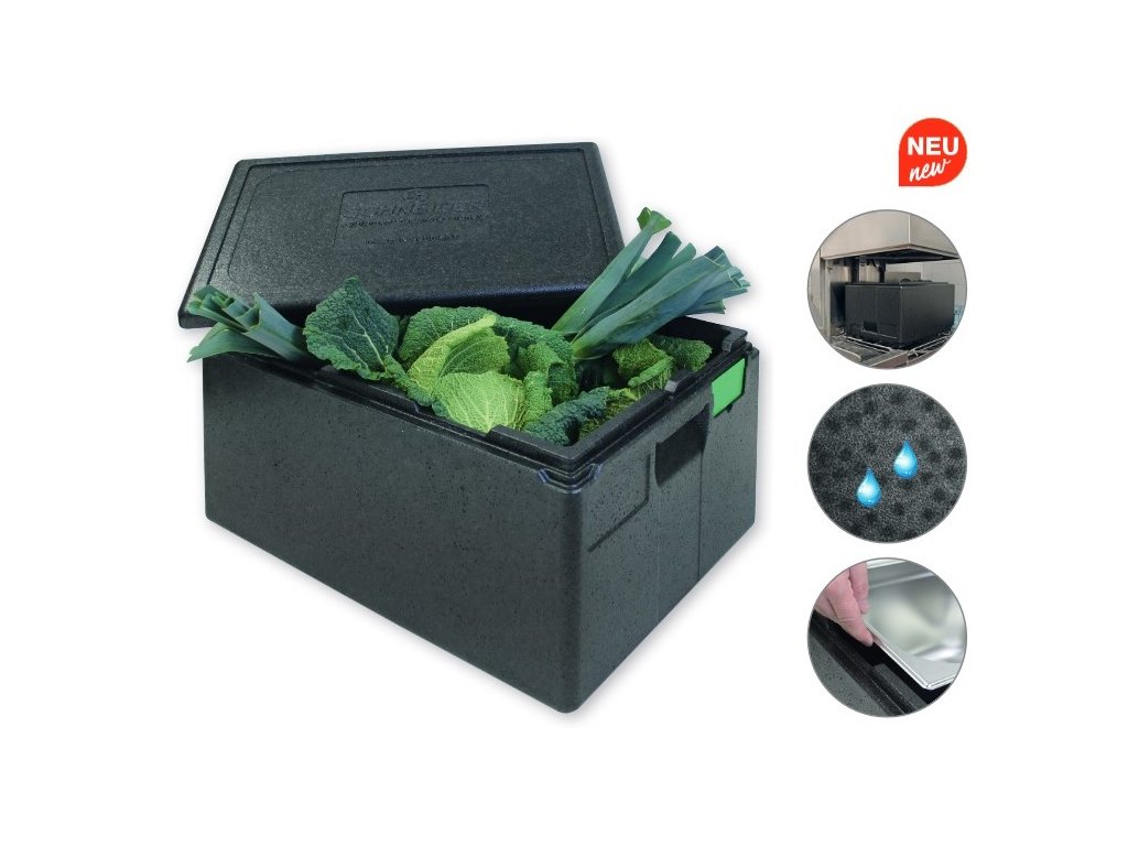 Optimální pro transport i úschovu potravin, které jsou uložené v gastronádobách, vytvarování vnitřního okraje boxu odpovídá okraji gastronádoby, která je tak velmi dobře fixována.