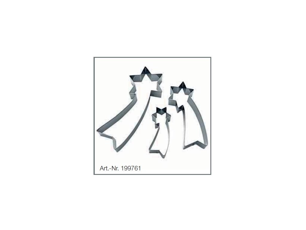 Vánoční sada vykrajovátek "kometa" obsahuje vykrajovátka komety ve třech velikostech.