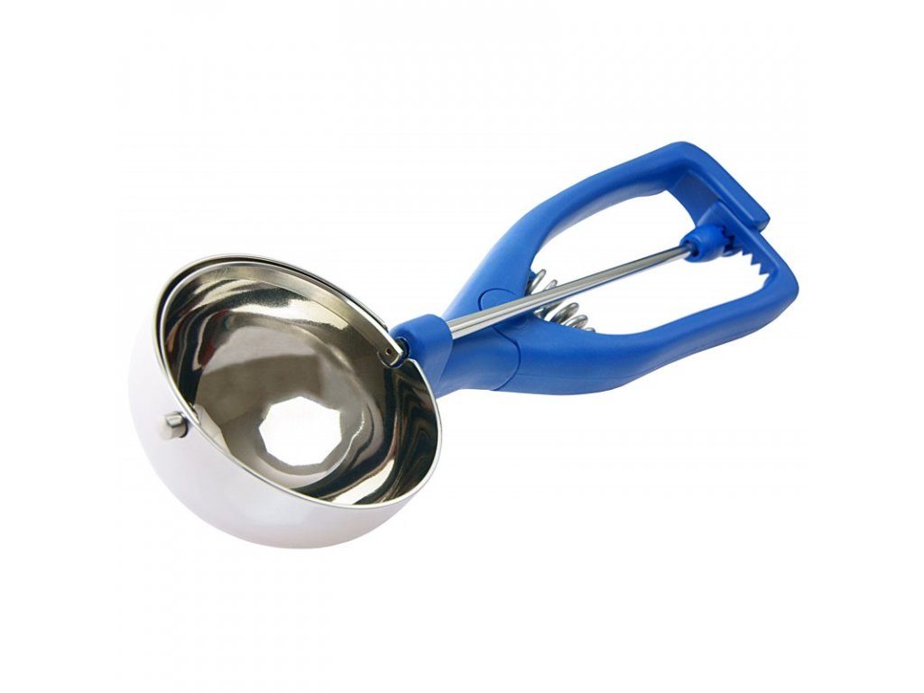 Nerezové zmrzlinové kleště s plastovou rukojetí v modré barvě jsou určeny pro vysokou zátěž.